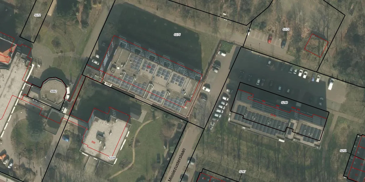 Het perceel waarop Missiezusterslaan 69 staat heeft een oppervlakte van 4245 m². Dit is een zeer groot perceel. De perceeloppervlakte wordt geregistreerd door het Kadaster. Gedetailleerde informatie over de maten van dit perceel kunt u vinden in het rapport Kadastrale kaart met maatvoering van Missiezusterslaan 69.