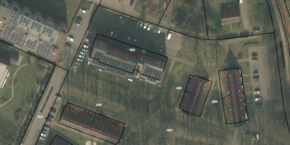 Missiezusterslaan 72 is gelegen op kadastraal perceel UDN00C5248. Deze kadastrale aanduiding is uniek en wordt gebruikt door het Kadaster om eigendomsrechten en andere zakelijke rechten vast te leggen. Het perceel maakt onderdeel uit van de kadastrale gemeente Uden.