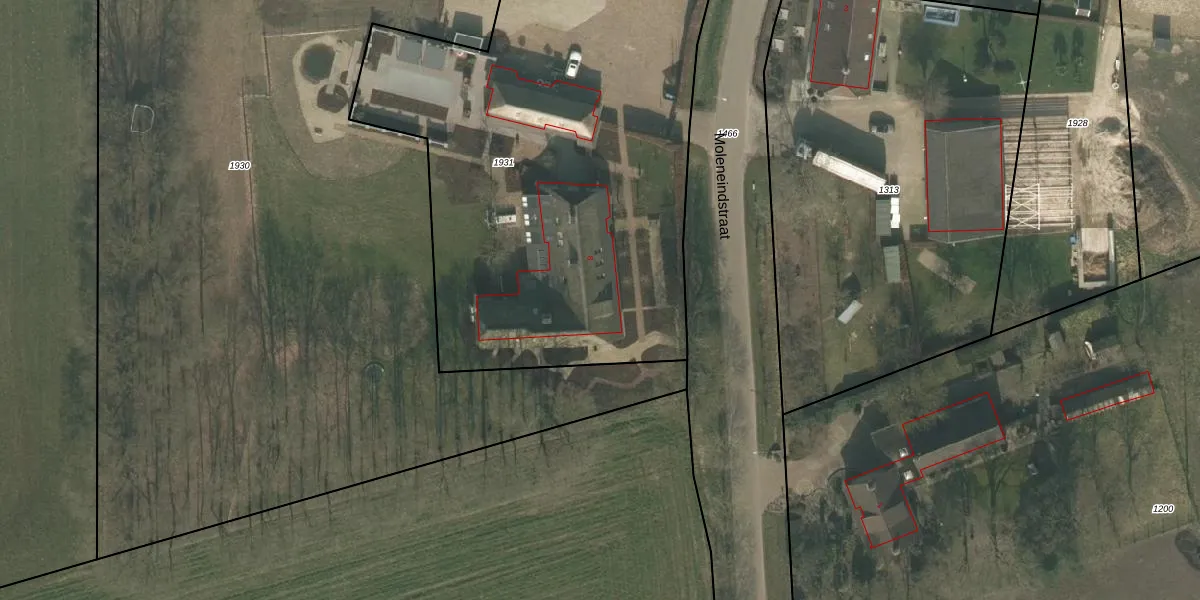 Het perceel waarop Moleneindstraat 8 staat heeft een oppervlakte van 3048 m². Dit is een zeer groot perceel. De perceeloppervlakte wordt geregistreerd door het Kadaster. Gedetailleerde informatie over de maten van dit perceel kunt u vinden in het rapport Kadastrale kaart met maatvoering van Moleneindstraat 8.
