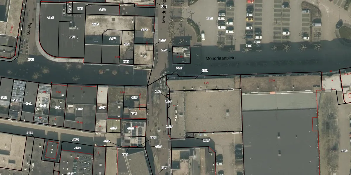 Mondriaanplein 25 is gelegen op kadastraal perceel UDN00M6115. Deze kadastrale aanduiding is uniek en wordt gebruikt door het Kadaster om eigendomsrechten en andere zakelijke rechten vast te leggen. Het perceel maakt onderdeel uit van de kadastrale gemeente Uden.