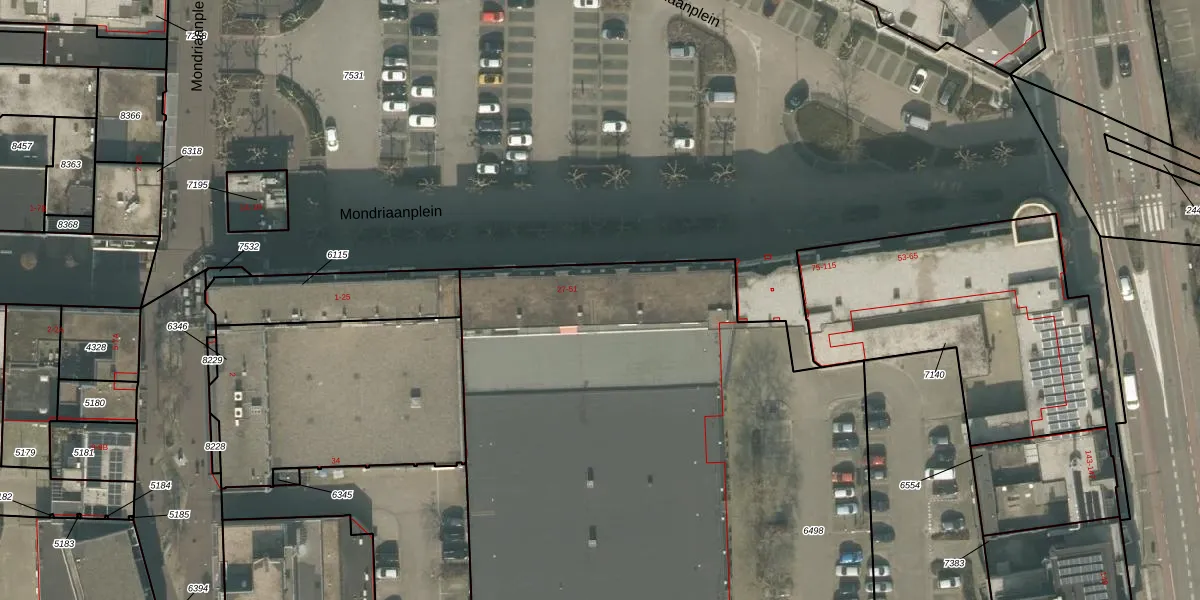 Het perceel waarop Mondriaanplein 39 staat heeft een oppervlakte van 4400 m². Dit is een zeer groot perceel. De perceeloppervlakte wordt geregistreerd door het Kadaster. Gedetailleerde informatie over de maten van dit perceel kunt u vinden in het rapport Kadastrale kaart met maatvoering van Mondriaanplein 39.