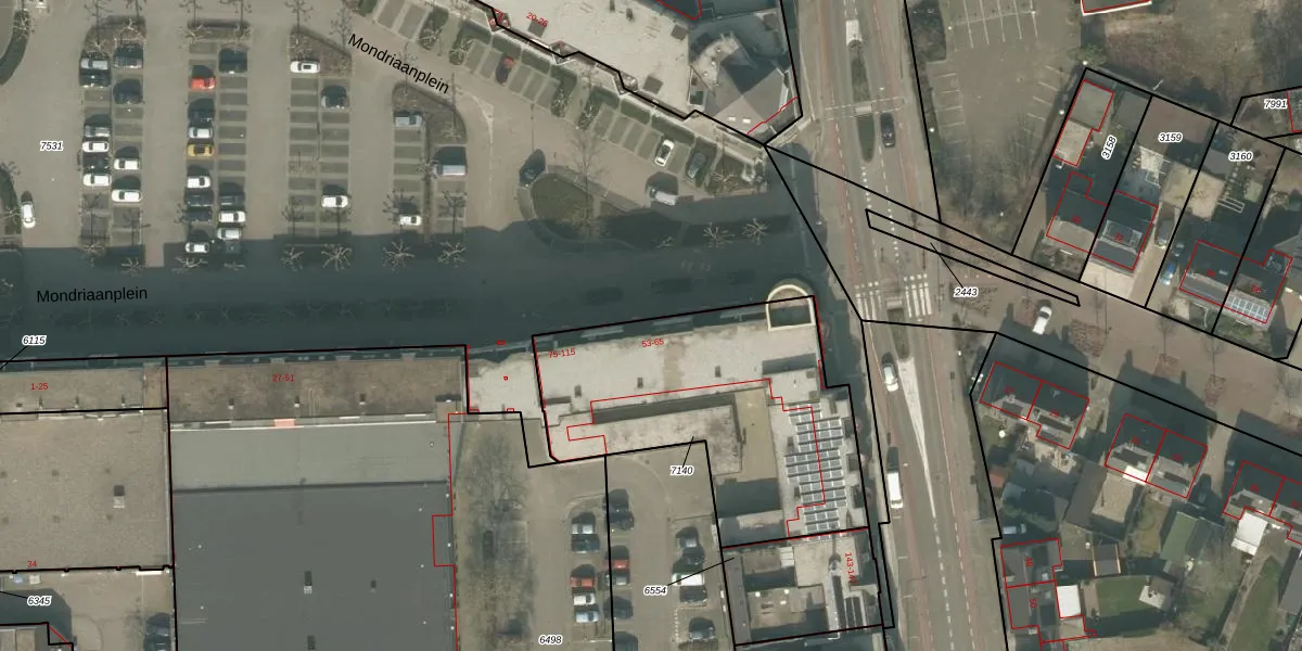 Het perceel waarop Mondriaanplein 59 staat heeft een oppervlakte van 1260 m². Dit is een zeer groot perceel. De perceeloppervlakte wordt geregistreerd door het Kadaster. Gedetailleerde informatie over de maten van dit perceel kunt u vinden in het rapport Kadastrale kaart met maatvoering van Mondriaanplein 59.