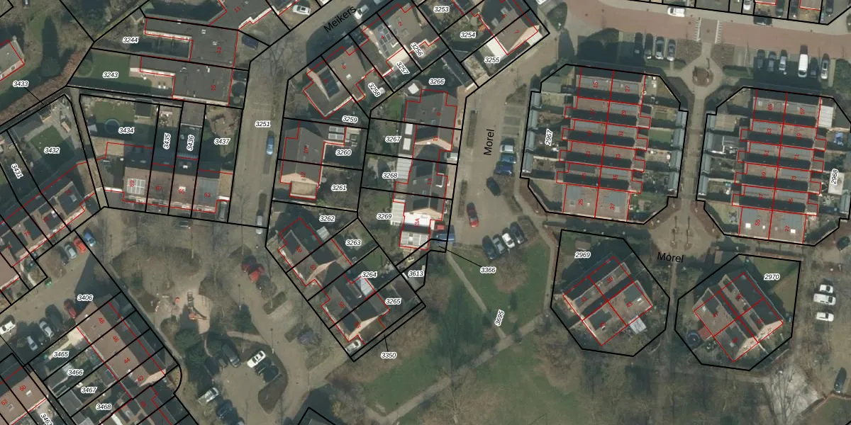 Het perceel waarop Morel 13-A staat heeft een oppervlakte van 266 m². Dit is een middelgroot perceel. De perceeloppervlakte wordt geregistreerd door het Kadaster. Gedetailleerde informatie over de maten van dit perceel kunt u vinden in het rapport Kadastrale kaart met maatvoering van Morel 13-A.