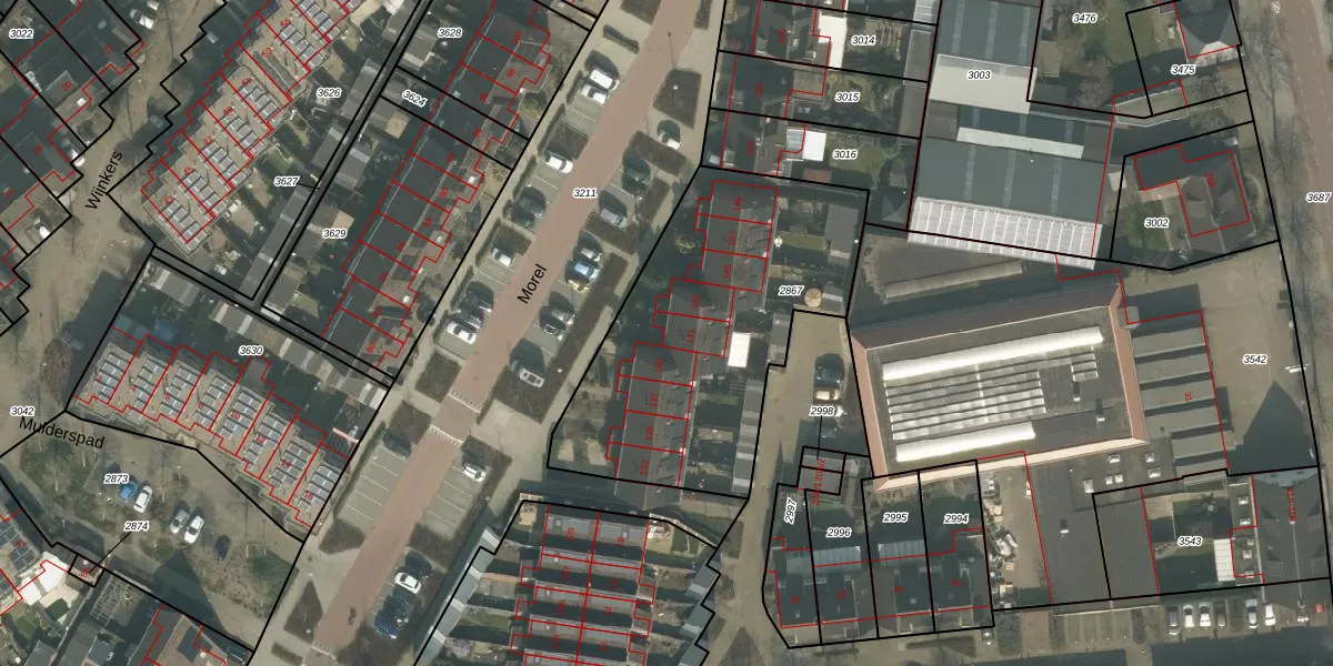 Het perceel waarop Morel 141 staat heeft een oppervlakte van 1363 m². Dit is een zeer groot perceel. De perceeloppervlakte wordt geregistreerd door het Kadaster. Gedetailleerde informatie over de maten van dit perceel kunt u vinden in het rapport Kadastrale kaart met maatvoering van Morel 141.