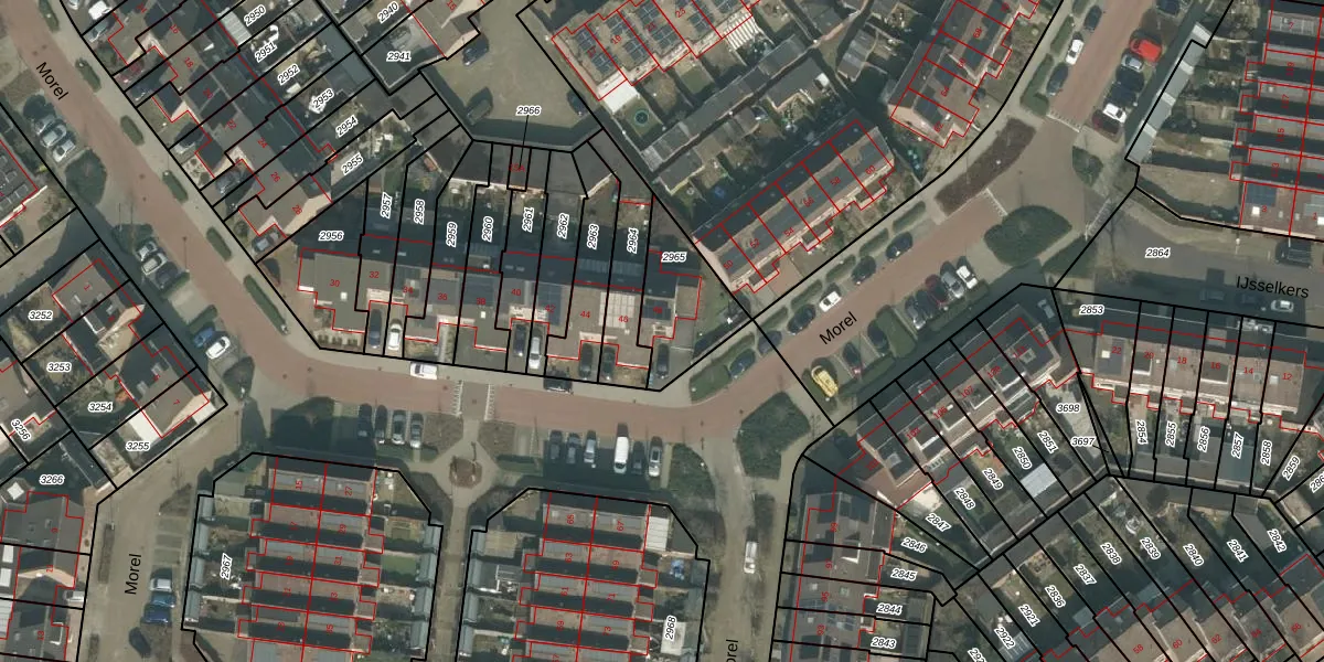 Het perceel waarop Morel 48 staat heeft een oppervlakte van 262 m². Dit is een middelgroot perceel. De perceeloppervlakte wordt geregistreerd door het Kadaster. Gedetailleerde informatie over de maten van dit perceel kunt u vinden in het rapport Kadastrale kaart met maatvoering van Morel 48.