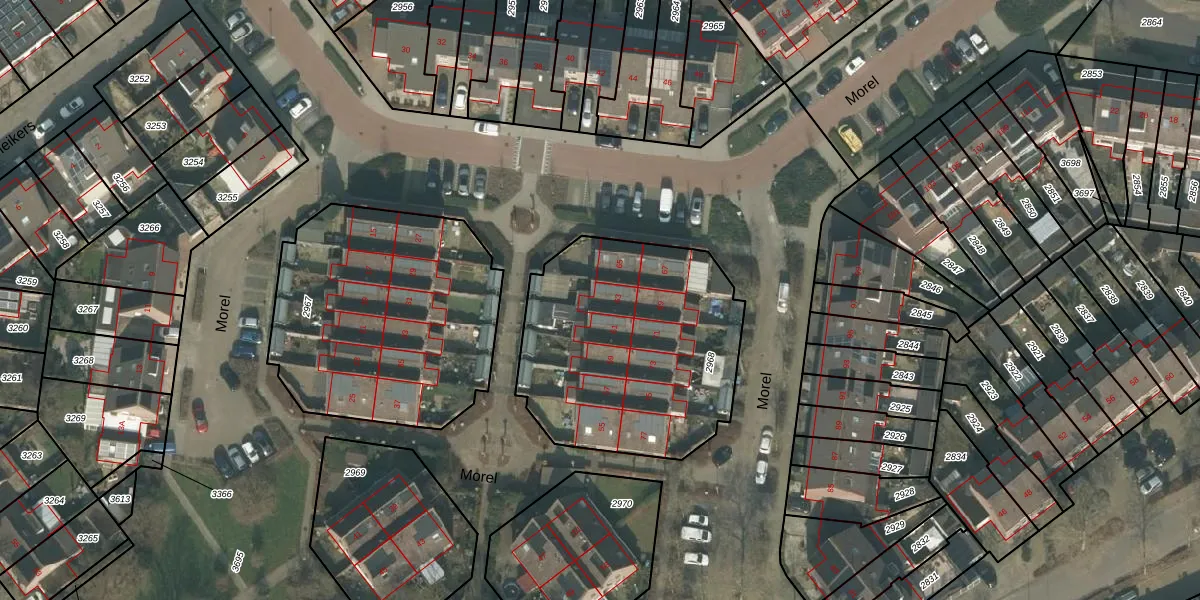 Morel 63 is gelegen op kadastraal perceel UDN00L2968. Deze kadastrale aanduiding is uniek en wordt gebruikt door het Kadaster om eigendomsrechten en andere zakelijke rechten vast te leggen. Het perceel maakt onderdeel uit van de kadastrale gemeente Uden.