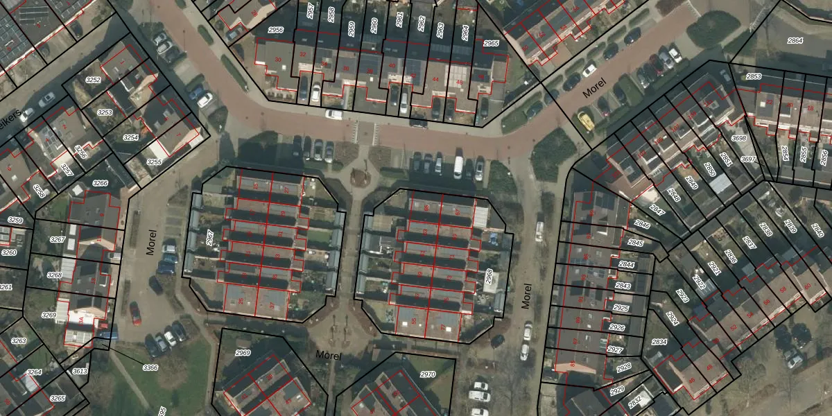 Morel 65 is gelegen op kadastraal perceel UDN00L2968. Deze kadastrale aanduiding is uniek en wordt gebruikt door het Kadaster om eigendomsrechten en andere zakelijke rechten vast te leggen. Het perceel maakt onderdeel uit van de kadastrale gemeente Uden.