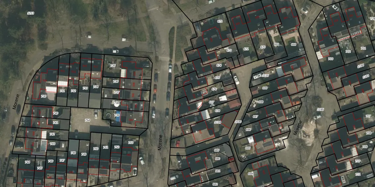 Het perceel waarop Morene 213 staat heeft een oppervlakte van 187 m². Dit is een middelgroot perceel. De perceeloppervlakte wordt geregistreerd door het Kadaster. Gedetailleerde informatie over de maten van dit perceel kunt u vinden in het rapport Kadastrale kaart met maatvoering van Morene 213.