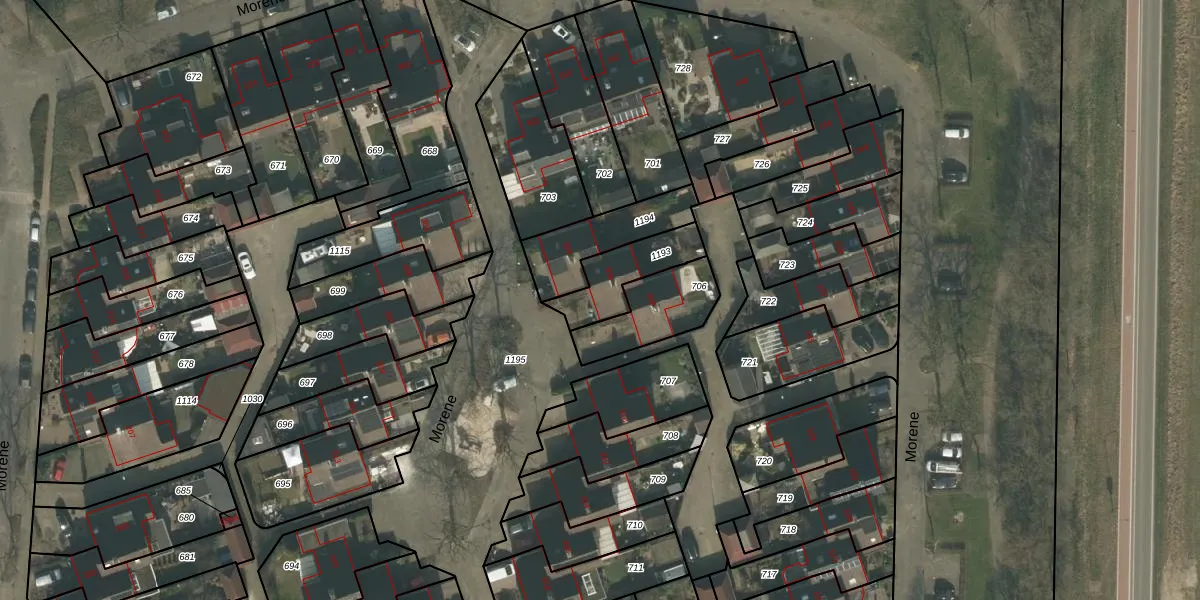 Het perceel waarop Morene 306 staat heeft een oppervlakte van 185 m². Dit is een middelgroot perceel. De perceeloppervlakte wordt geregistreerd door het Kadaster. Gedetailleerde informatie over de maten van dit perceel kunt u vinden in het rapport Kadastrale kaart met maatvoering van Morene 306.