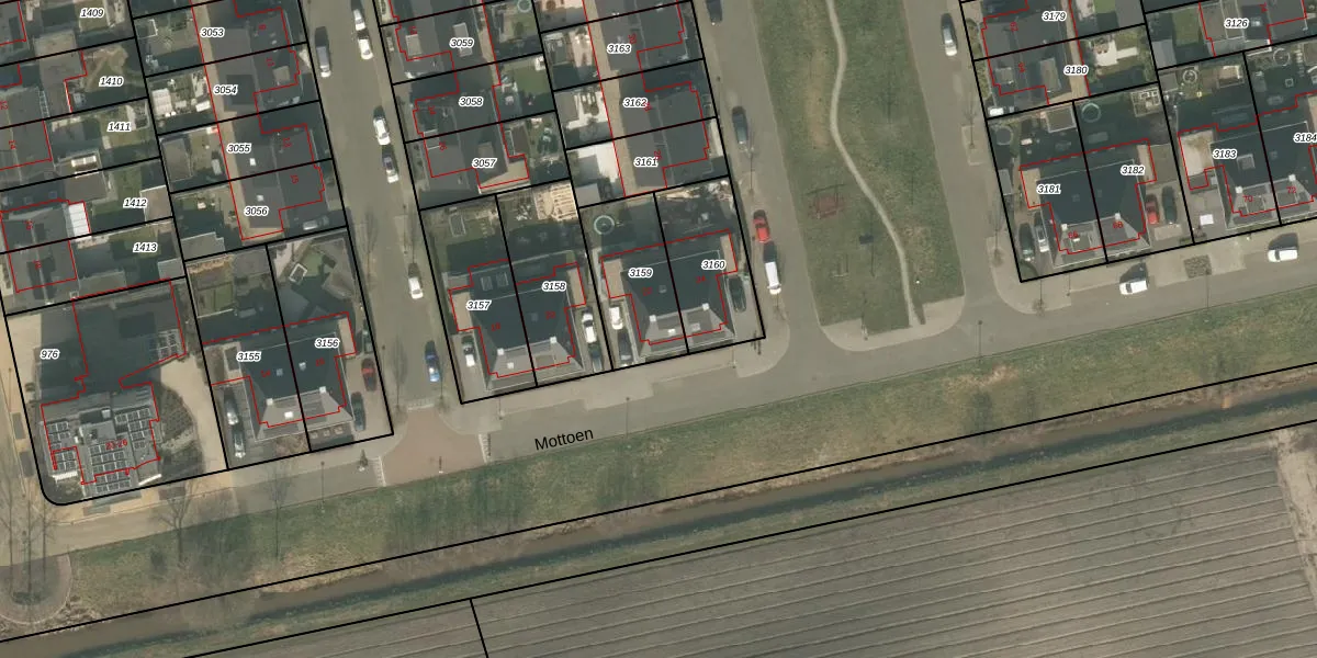 Het perceel waarop Mottoen 22 staat heeft een oppervlakte van 297 m². Dit is een middelgroot perceel. De perceeloppervlakte wordt geregistreerd door het Kadaster. Gedetailleerde informatie over de maten van dit perceel kunt u vinden in het rapport Kadastrale kaart met maatvoering van Mottoen 22.