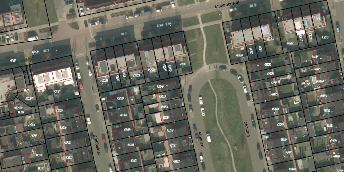 Gebruik de zoekbalk of klik op een perceel voor informatie over de adressen binnen dit perceel.