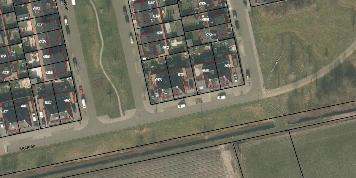 Het perceel waarop Mottoen 68 staat heeft een oppervlakte van 339 m². Dit is een groot perceel. De perceeloppervlakte wordt geregistreerd door het Kadaster. Gedetailleerde informatie over de maten van dit perceel kunt u vinden in het rapport Kadastrale kaart met maatvoering van Mottoen 68.