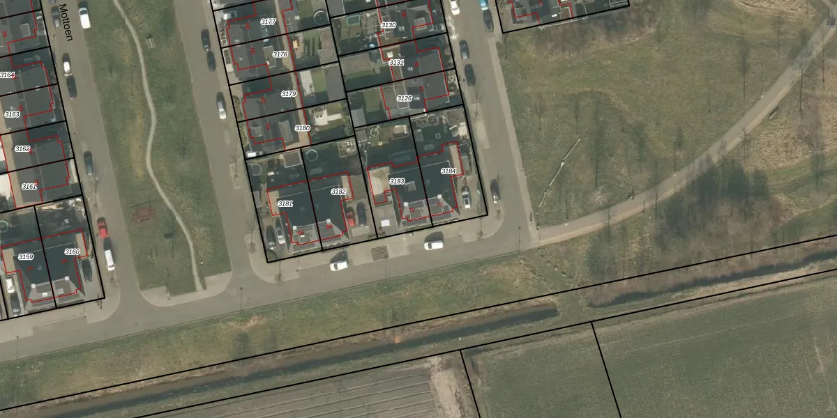 Mottoen 70 is gelegen op kadastraal perceel UDN00P3183. Deze kadastrale aanduiding is uniek en wordt gebruikt door het Kadaster om eigendomsrechten en andere zakelijke rechten vast te leggen. Het perceel maakt onderdeel uit van de kadastrale gemeente Uden.