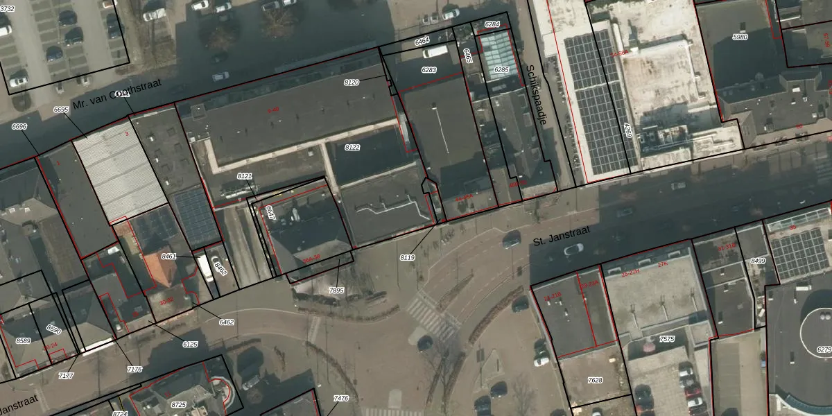 Het perceel waarop het adres ligt is UDN00-M-8122. De afkorting 'UDN00' staat voor kadastrale gemeente Uden. Het perceel is kleiner dan gemiddeld in Uden. Het perceel is 1960 m² groot, terwijl het gemiddelde ligt op 3253,45 m². Het grootste perceel in de kadastrale gemeente is 1,06 km². Het kleinste perceel heeft een oppervlakte van 0 m². Op het perceel zijn 31 adressen aanwezig. In de Basisregistratie Kadaster (BRK) werden de grenzen van het perceel geregistreerd op 02-11-2017.