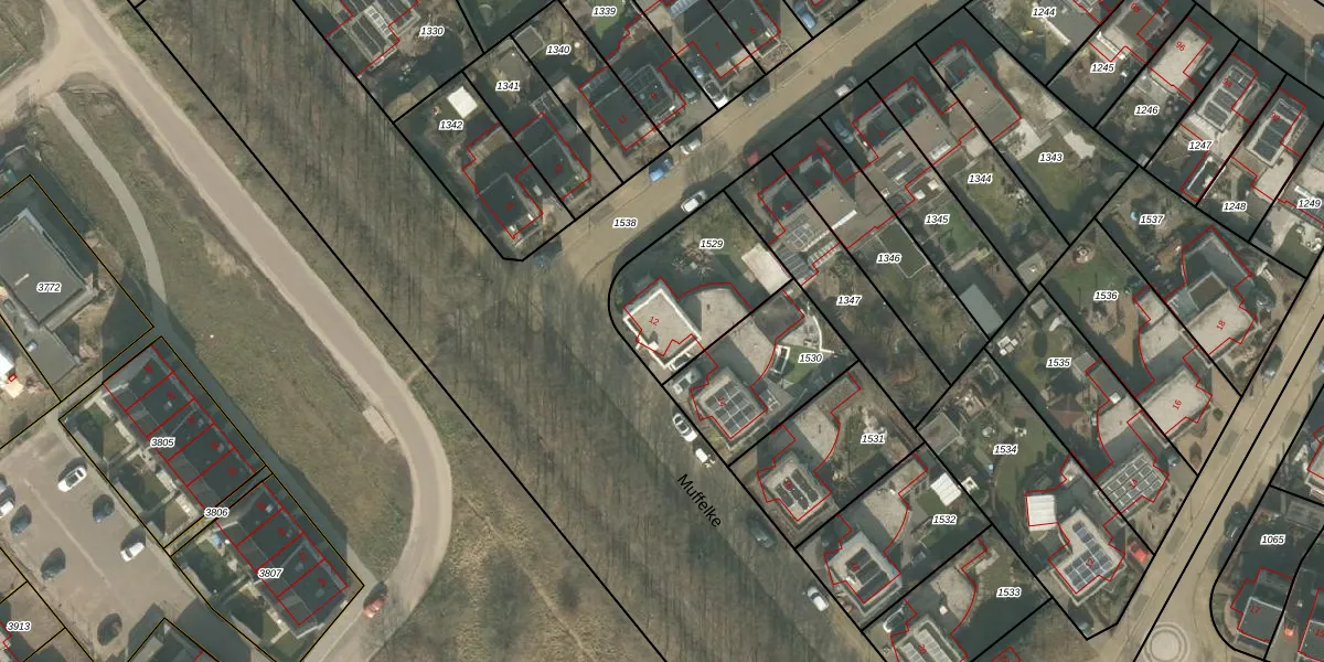 Het perceel waarop Muffelke 12 staat heeft een oppervlakte van 437 m². Dit is een groot perceel. De perceeloppervlakte wordt geregistreerd door het Kadaster. Gedetailleerde informatie over de maten van dit perceel kunt u vinden in het rapport Kadastrale kaart met maatvoering van Muffelke 12.