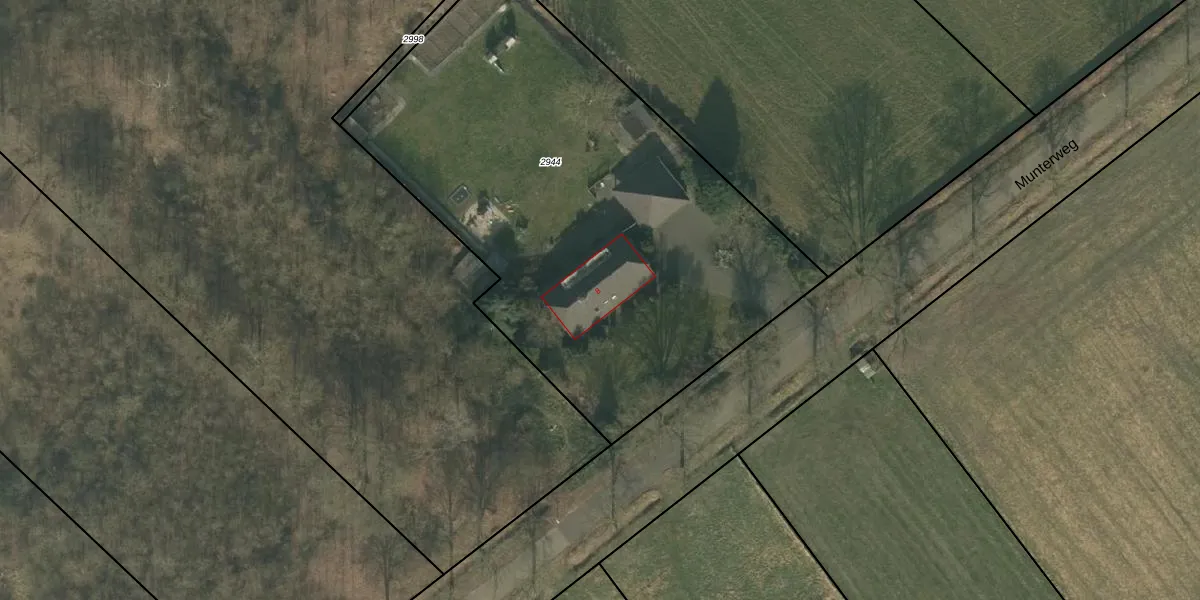 Het perceel waarop Munterweg 8 staat heeft een oppervlakte van 3005 m². Dit is een zeer groot perceel. De perceeloppervlakte wordt geregistreerd door het Kadaster. Gedetailleerde informatie over de maten van dit perceel kunt u vinden in het rapport Kadastrale kaart met maatvoering van Munterweg 8.