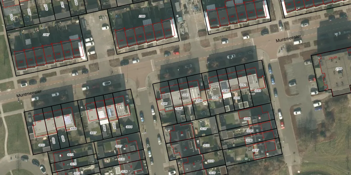 Het perceel waarop Muntmeester 161 staat heeft een oppervlakte van 136 m². Dit is een middelgroot perceel. De perceeloppervlakte wordt geregistreerd door het Kadaster. Gedetailleerde informatie over de maten van dit perceel kunt u vinden in het rapport Kadastrale kaart met maatvoering van Muntmeester 161.
