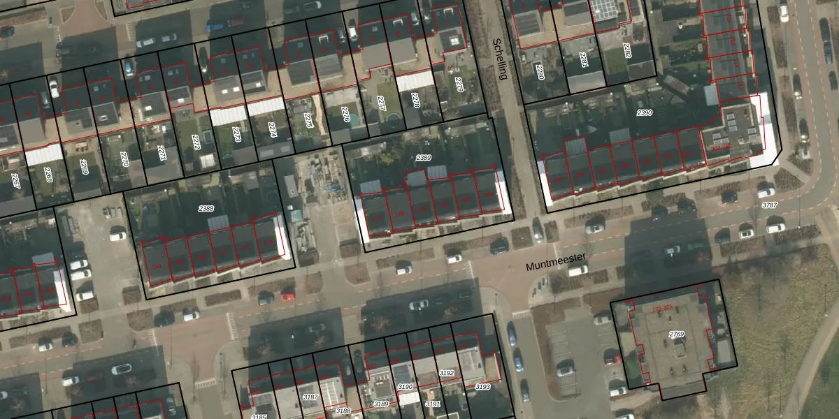 Het perceel waarop Muntmeester 180 staat heeft een oppervlakte van 964 m². Dit is een groot perceel. De perceeloppervlakte wordt geregistreerd door het Kadaster. Gedetailleerde informatie over de maten van dit perceel kunt u vinden in het rapport Kadastrale kaart met maatvoering van Muntmeester 180.