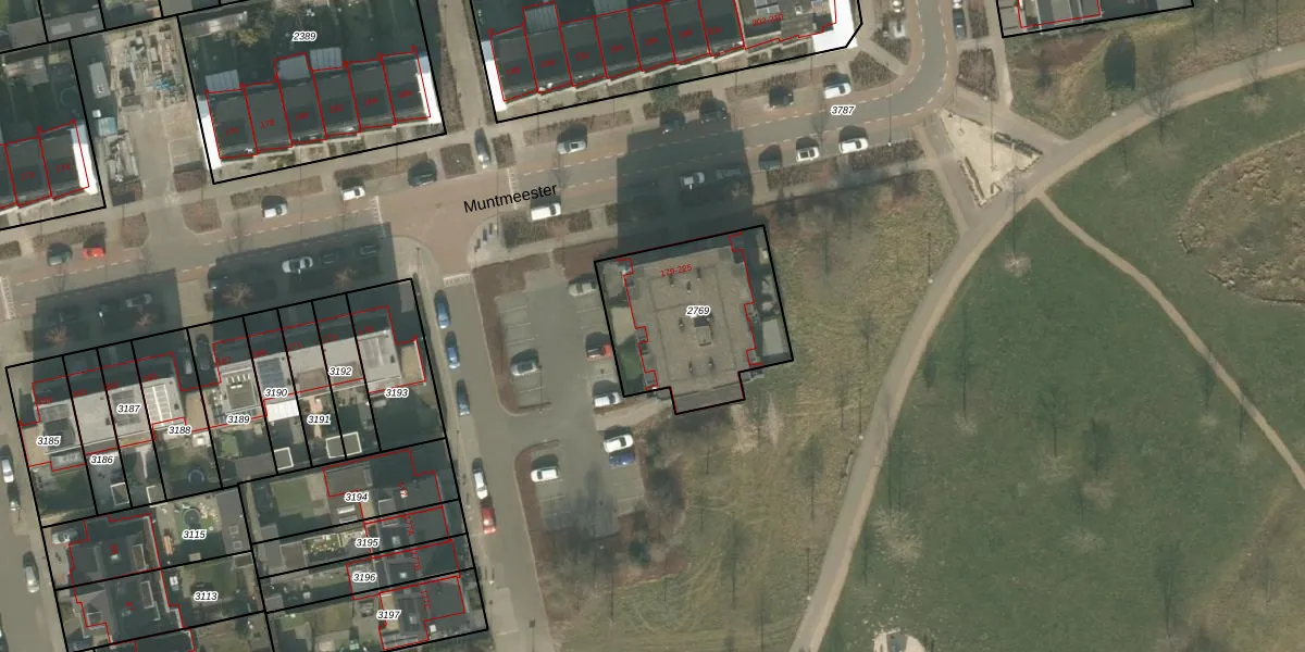 Het perceel waarop Muntmeester 193 staat heeft een oppervlakte van 608 m². Dit is een groot perceel. De perceeloppervlakte wordt geregistreerd door het Kadaster. Gedetailleerde informatie over de maten van dit perceel kunt u vinden in het rapport Kadastrale kaart met maatvoering van Muntmeester 193.