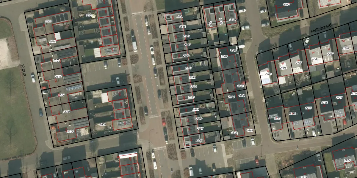 Gebruik de zoekbalk of klik op een perceel voor informatie over de adressen binnen dit perceel.