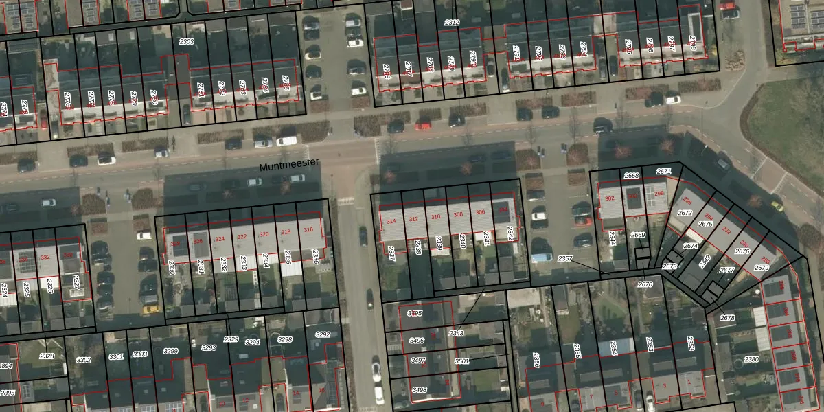 Gebruik de zoekbalk of klik op een perceel voor informatie over de adressen binnen dit perceel.