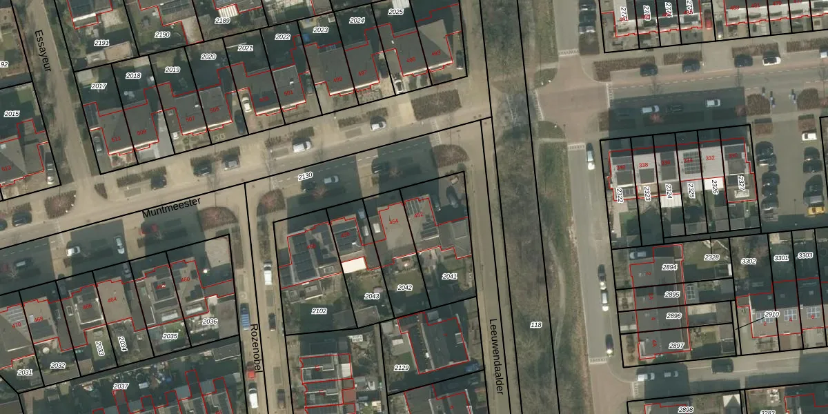 Het perceel waarop Muntmeester 452 staat heeft een oppervlakte van 411 m². Dit is een groot perceel. De perceeloppervlakte wordt geregistreerd door het Kadaster. Gedetailleerde informatie over de maten van dit perceel kunt u vinden in het rapport Kadastrale kaart met maatvoering van Muntmeester 452.