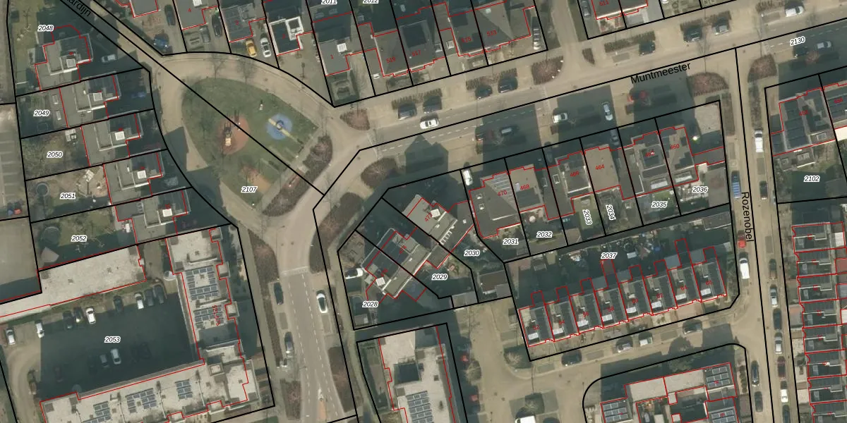 Gebruik de zoekbalk of klik op een perceel voor informatie over de adressen binnen dit perceel.