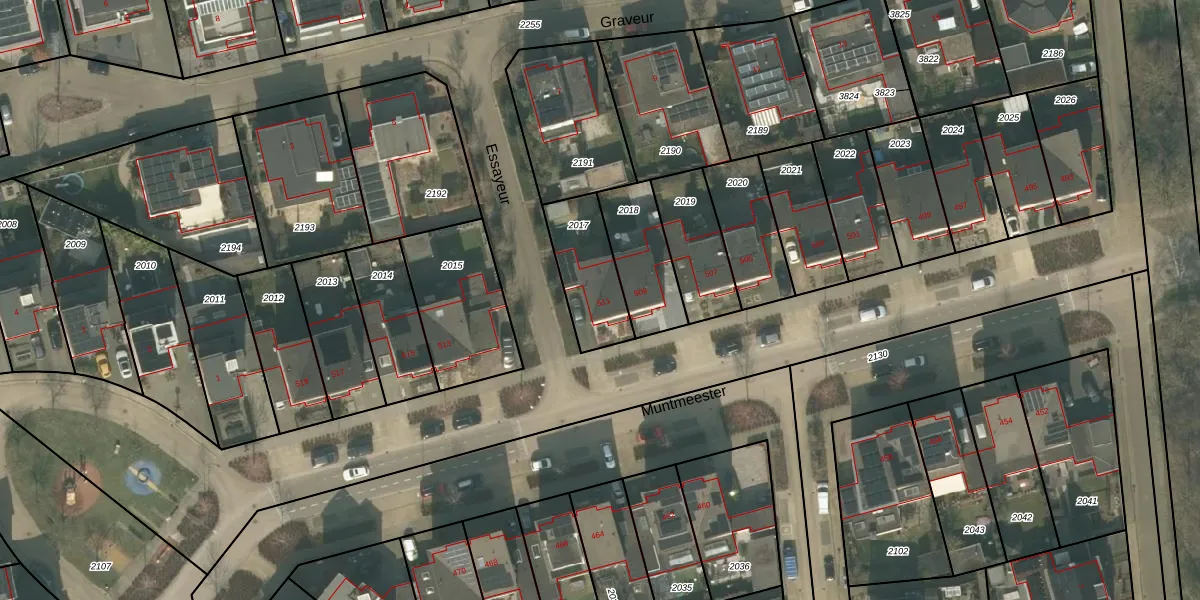 Gebruik de zoekbalk of klik op een perceel voor informatie over de adressen binnen dit perceel.