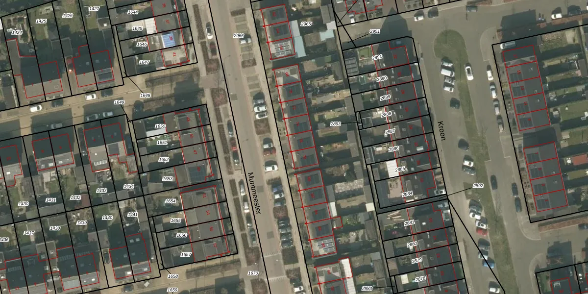 Het perceel waarop Muntmeester 76 staat heeft een oppervlakte van 4962 m². Dit is een zeer groot perceel. De perceeloppervlakte wordt geregistreerd door het Kadaster. Gedetailleerde informatie over de maten van dit perceel kunt u vinden in het rapport Kadastrale kaart met maatvoering van Muntmeester 76.