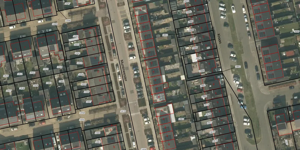 Het perceel waarop Muntmeester 82 staat heeft een oppervlakte van 4962 m². Dit is een zeer groot perceel. De perceeloppervlakte wordt geregistreerd door het Kadaster. Gedetailleerde informatie over de maten van dit perceel kunt u vinden in het rapport Kadastrale kaart met maatvoering van Muntmeester 82.