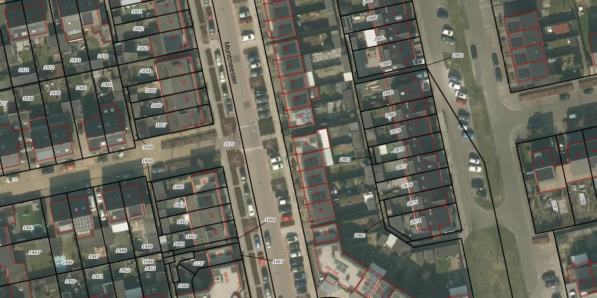 Het perceel waarop Muntmeester 90 staat heeft een oppervlakte van 4962 m². Dit is een zeer groot perceel. De perceeloppervlakte wordt geregistreerd door het Kadaster. Gedetailleerde informatie over de maten van dit perceel kunt u vinden in het rapport Kadastrale kaart met maatvoering van Muntmeester 90.