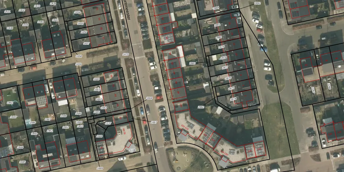 Het perceel waarop Muntmeester 96 staat heeft een oppervlakte van 4962 m². Dit is een zeer groot perceel. De perceeloppervlakte wordt geregistreerd door het Kadaster. Gedetailleerde informatie over de maten van dit perceel kunt u vinden in het rapport Kadastrale kaart met maatvoering van Muntmeester 96.