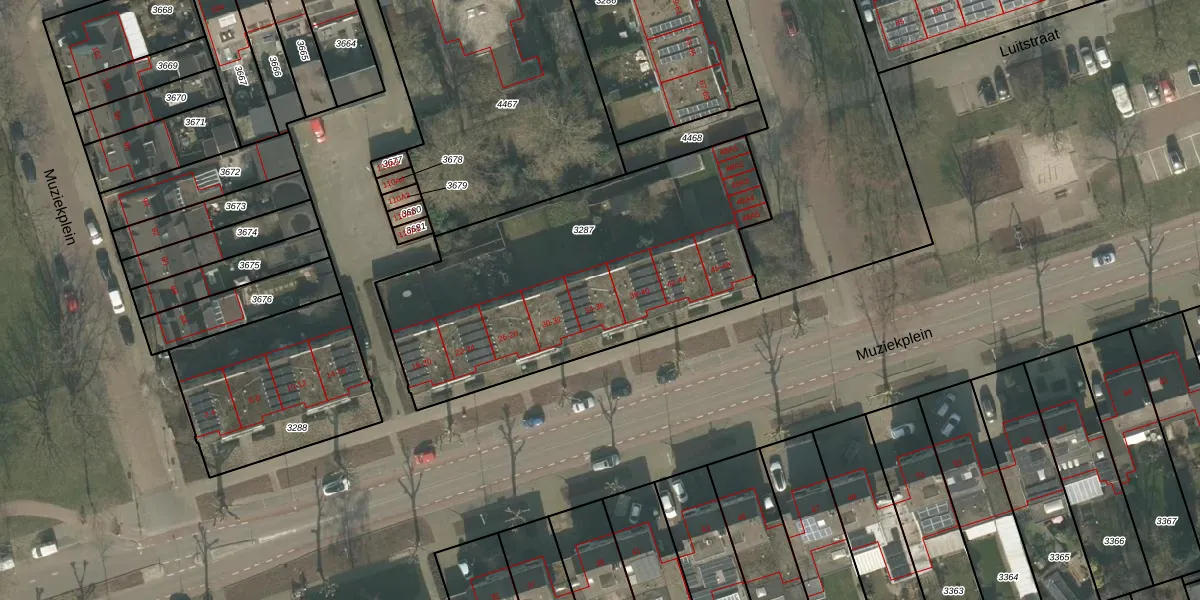 Het perceel waarop Muziekplein 36 staat heeft een oppervlakte van 1653 m². Dit is een zeer groot perceel. De perceeloppervlakte wordt geregistreerd door het Kadaster. Gedetailleerde informatie over de maten van dit perceel kunt u vinden in het rapport Kadastrale kaart met maatvoering van Muziekplein 36.