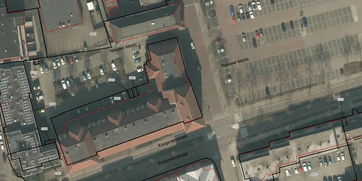 Het perceel waarop Nieuwe Markt 17 staat heeft een oppervlakte van 2504 m². Dit is een zeer groot perceel. De perceeloppervlakte wordt geregistreerd door het Kadaster. Gedetailleerde informatie over de maten van dit perceel kunt u vinden in het rapport Kadastrale kaart met maatvoering van Nieuwe Markt 17.