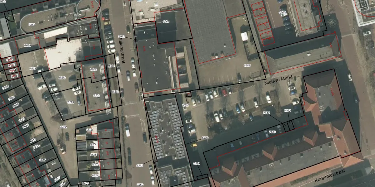 Het perceel waarop Nieuwe Markt 5 staat heeft een oppervlakte van 7 m². Dit is een klein perceel. De perceeloppervlakte wordt geregistreerd door het Kadaster. Gedetailleerde informatie over de maten van dit perceel kunt u vinden in het rapport Kadastrale kaart met maatvoering van Nieuwe Markt 5.
