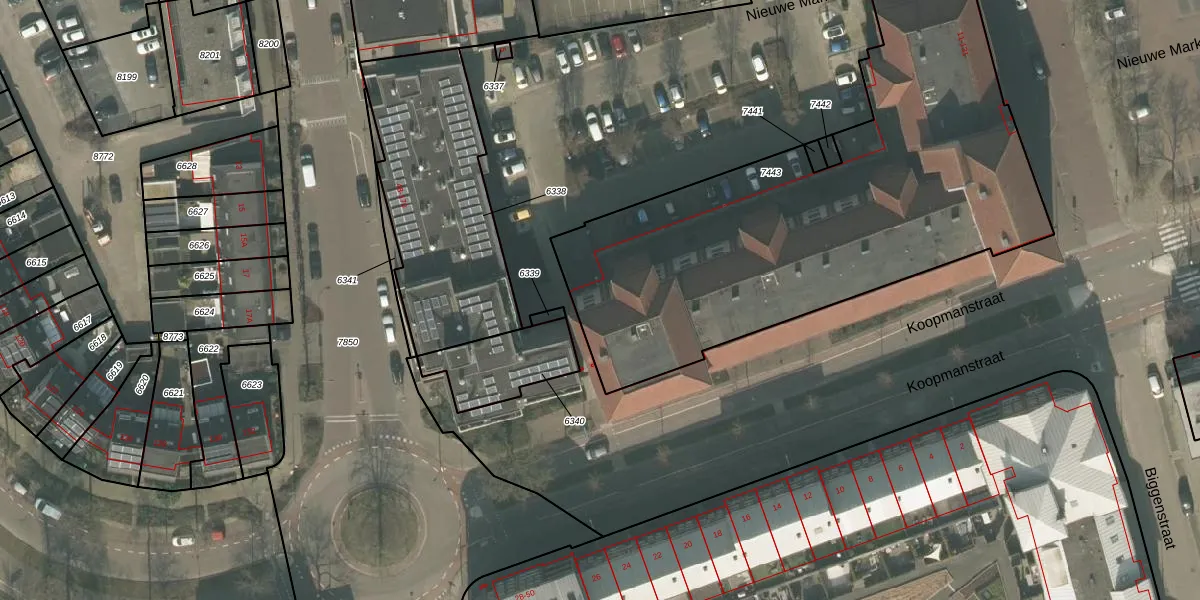Het perceel waarop Nieuwe Markt 91 staat heeft een oppervlakte van 2504 m². Dit is een zeer groot perceel. De perceeloppervlakte wordt geregistreerd door het Kadaster. Gedetailleerde informatie over de maten van dit perceel kunt u vinden in het rapport Kadastrale kaart met maatvoering van Nieuwe Markt 91.