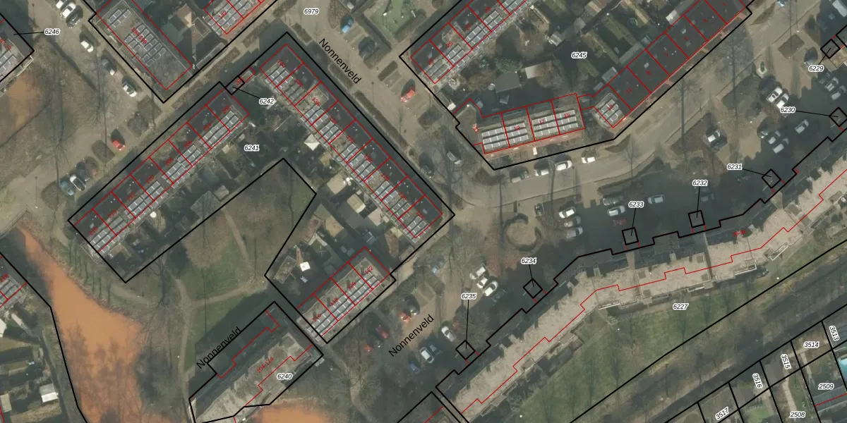 Het perceel waarop Nonnenveld 124 staat heeft een oppervlakte van 2792 m². Dit is een zeer groot perceel. De perceeloppervlakte wordt geregistreerd door het Kadaster. Gedetailleerde informatie over de maten van dit perceel kunt u vinden in het rapport Kadastrale kaart met maatvoering van Nonnenveld 124.