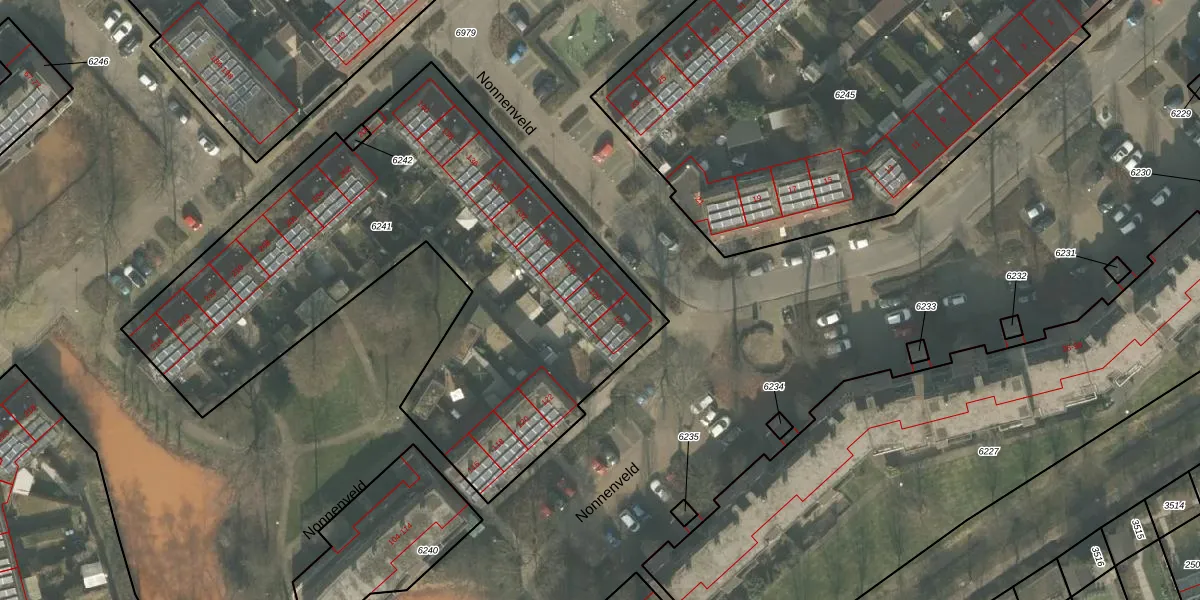 Het perceel waarop Nonnenveld 126 staat heeft een oppervlakte van 2792 m². Dit is een zeer groot perceel. De perceeloppervlakte wordt geregistreerd door het Kadaster. Gedetailleerde informatie over de maten van dit perceel kunt u vinden in het rapport Kadastrale kaart met maatvoering van Nonnenveld 126.