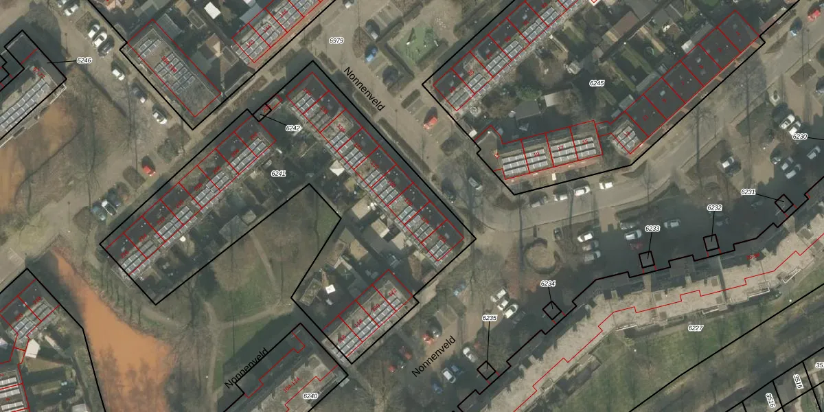 Het perceel waarop Nonnenveld 128 staat heeft een oppervlakte van 2792 m². Dit is een zeer groot perceel. De perceeloppervlakte wordt geregistreerd door het Kadaster. Gedetailleerde informatie over de maten van dit perceel kunt u vinden in het rapport Kadastrale kaart met maatvoering van Nonnenveld 128.
