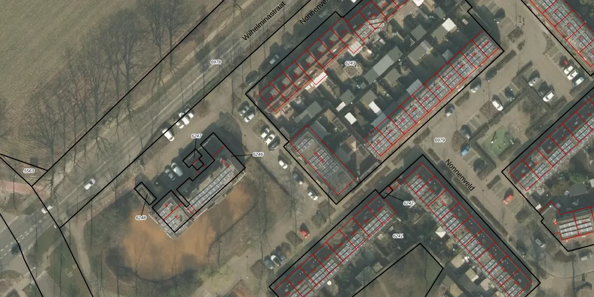 Het perceel waarop Nonnenveld 184 staat heeft een oppervlakte van 3540 m². Dit is een zeer groot perceel. De perceeloppervlakte wordt geregistreerd door het Kadaster. Gedetailleerde informatie over de maten van dit perceel kunt u vinden in het rapport Kadastrale kaart met maatvoering van Nonnenveld 184.