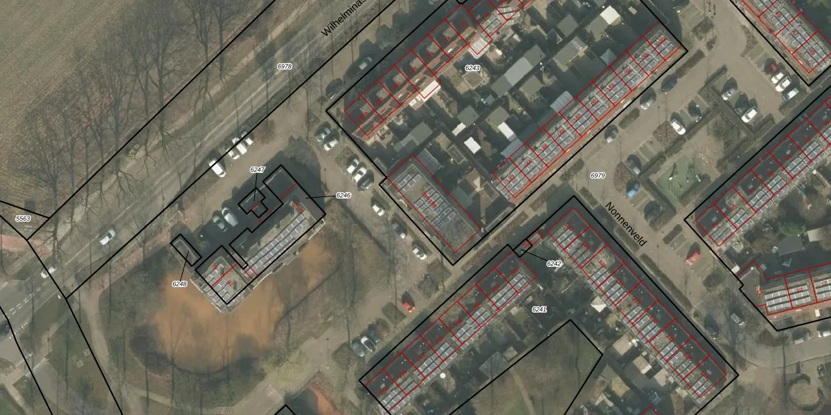 Het perceel waarop Nonnenveld 188 staat heeft een oppervlakte van 3540 m². Dit is een zeer groot perceel. De perceeloppervlakte wordt geregistreerd door het Kadaster. Gedetailleerde informatie over de maten van dit perceel kunt u vinden in het rapport Kadastrale kaart met maatvoering van Nonnenveld 188.