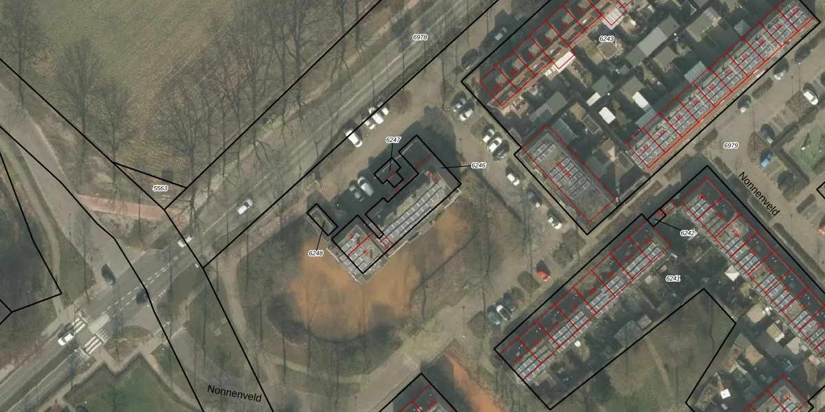 Nonnenveld 75 is gelegen op kadastraal perceel UDN00M6246. Deze kadastrale aanduiding is uniek en wordt gebruikt door het Kadaster om eigendomsrechten en andere zakelijke rechten vast te leggen. Het perceel maakt onderdeel uit van de kadastrale gemeente Uden.