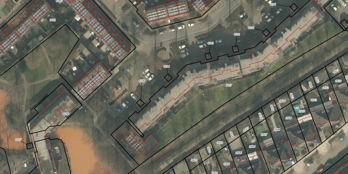 Het perceel waarop Nonnenveld 88 staat heeft een oppervlakte van 3719 m². Dit is een zeer groot perceel. De perceeloppervlakte wordt geregistreerd door het Kadaster. Gedetailleerde informatie over de maten van dit perceel kunt u vinden in het rapport Kadastrale kaart met maatvoering van Nonnenveld 88.