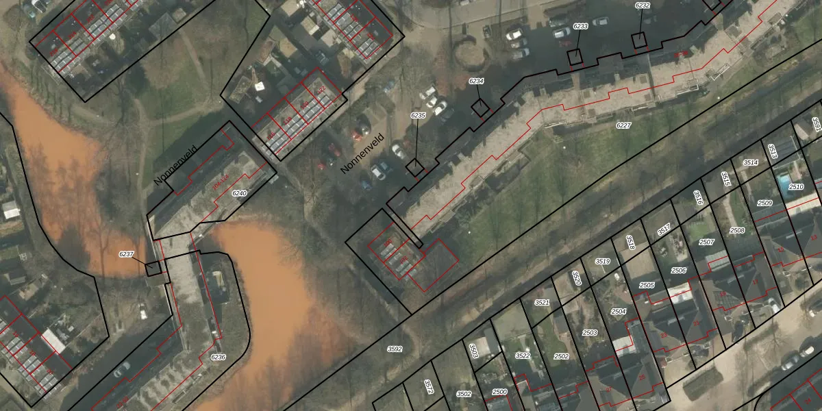 Het perceel waarop Nonnenveld 98 staat heeft een oppervlakte van 3719 m². Dit is een zeer groot perceel. De perceeloppervlakte wordt geregistreerd door het Kadaster. Gedetailleerde informatie over de maten van dit perceel kunt u vinden in het rapport Kadastrale kaart met maatvoering van Nonnenveld 98.
