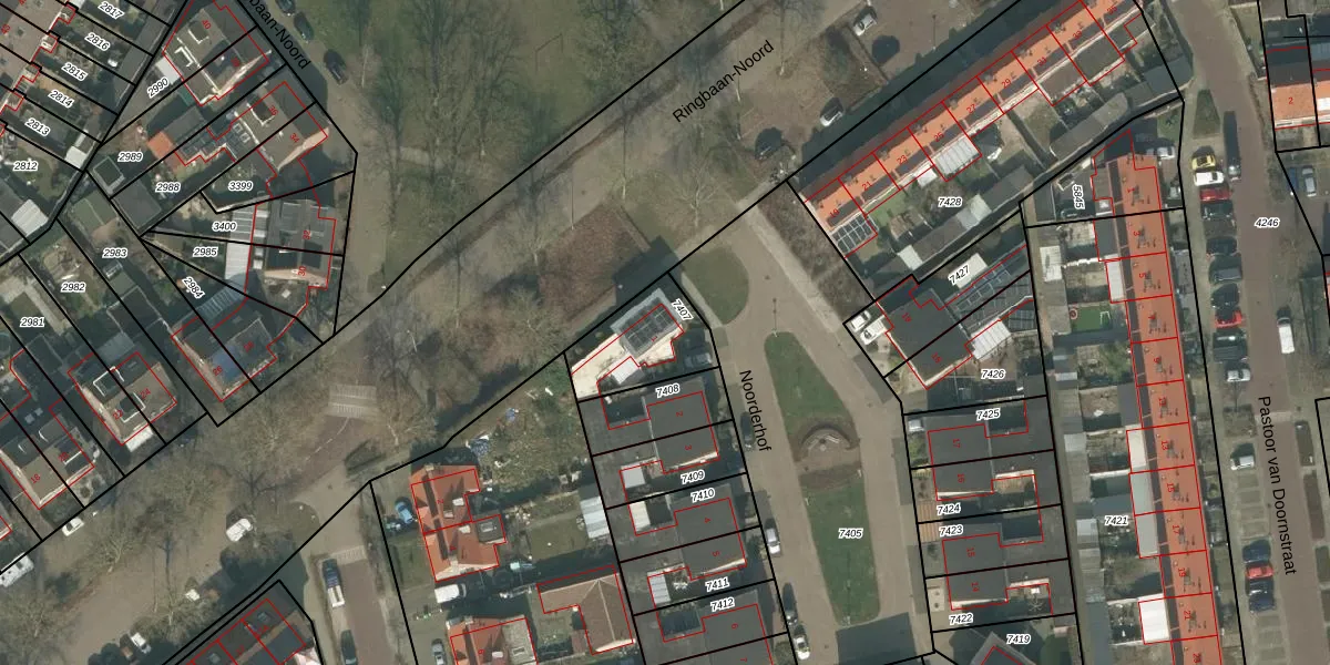 Gebruik de zoekbalk of klik op een perceel voor informatie over de adressen binnen dit perceel.