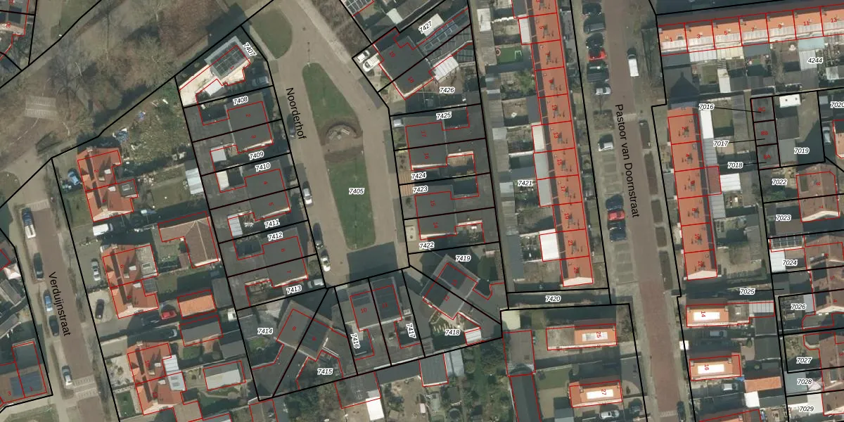 Gebruik de zoekbalk of klik op een perceel voor informatie over de adressen binnen dit perceel.