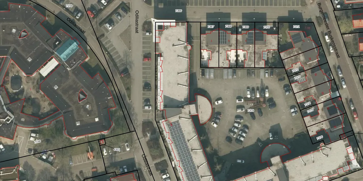 Het perceel waarop Odiliastraat 10 staat heeft een oppervlakte van 7184 m². Dit is een zeer groot perceel. De perceeloppervlakte wordt geregistreerd door het Kadaster. Gedetailleerde informatie over de maten van dit perceel kunt u vinden in het rapport Kadastrale kaart met maatvoering van Odiliastraat 10.