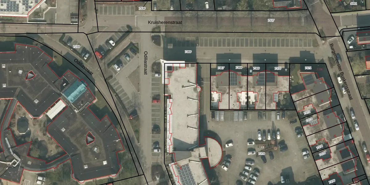 Het perceel waarop Odiliastraat 4 staat heeft een oppervlakte van 7184 m². Dit is een zeer groot perceel. De perceeloppervlakte wordt geregistreerd door het Kadaster. Gedetailleerde informatie over de maten van dit perceel kunt u vinden in het rapport Kadastrale kaart met maatvoering van Odiliastraat 4.