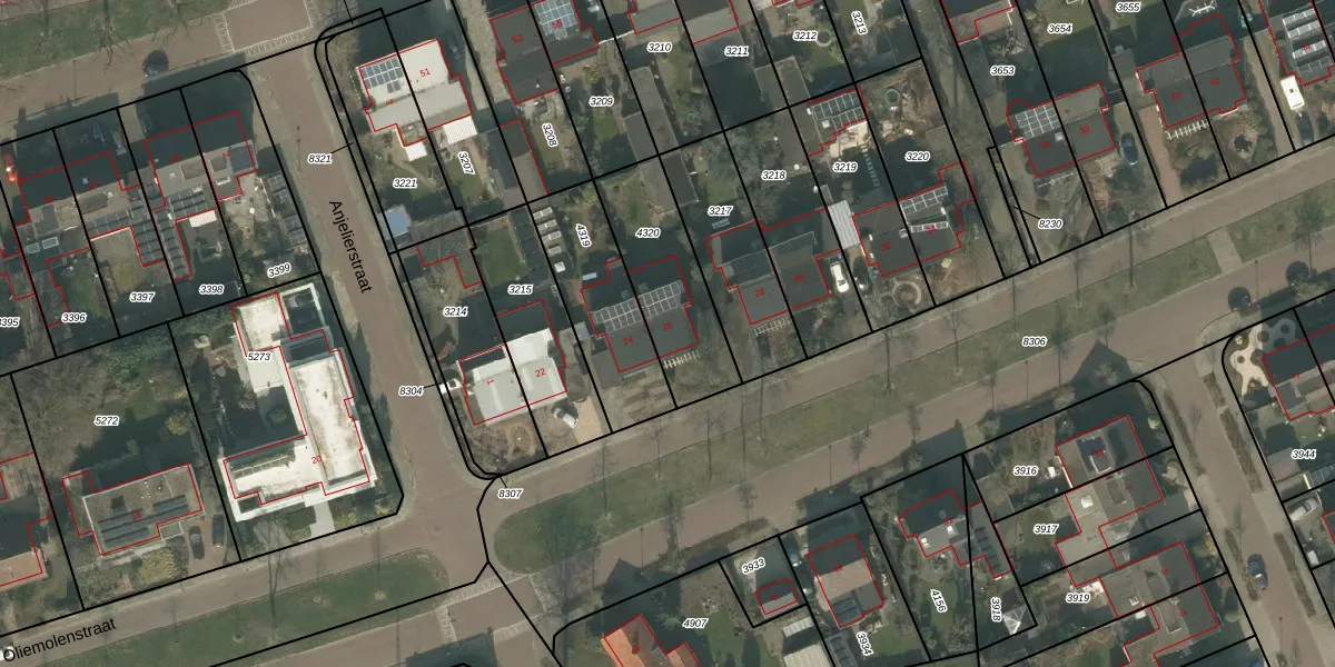 Het perceel waarop Oliemolenstraat 26 staat heeft een oppervlakte van 380 m². Dit is een groot perceel. De perceeloppervlakte wordt geregistreerd door het Kadaster. Gedetailleerde informatie over de maten van dit perceel kunt u vinden in het rapport Kadastrale kaart met maatvoering van Oliemolenstraat 26.