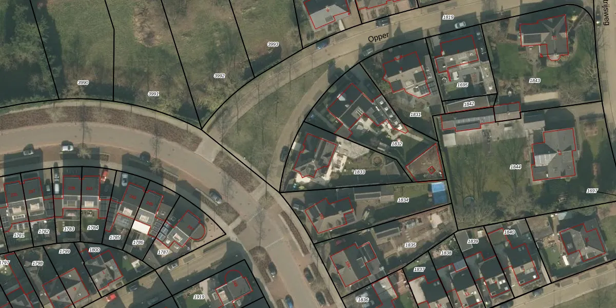 Opper 1 is gelegen op kadastraal perceel UDN00P1833. Deze kadastrale aanduiding is uniek en wordt gebruikt door het Kadaster om eigendomsrechten en andere zakelijke rechten vast te leggen. Het perceel maakt onderdeel uit van de kadastrale gemeente Uden.